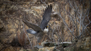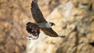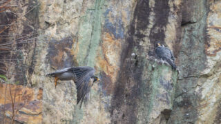 ハヤブサのつがいが巣営する場所でテリトリー侵入者への防衛行動を調べています。We are investigating territorial defense behavior against intruders at the nesting...